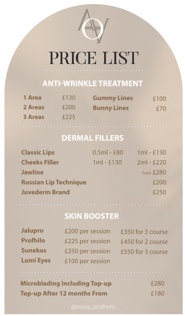 Competitive prices for a variety of treatments and take the first step towards achieving your desired look with Avora Aesthestics.